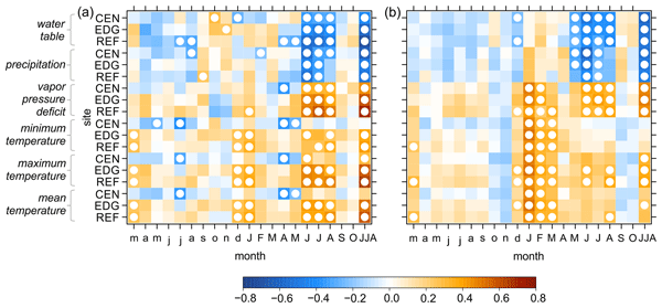 Peatland trees record strong and temporally stable hydroclimate information in tree-ring δ13C and δ18O
