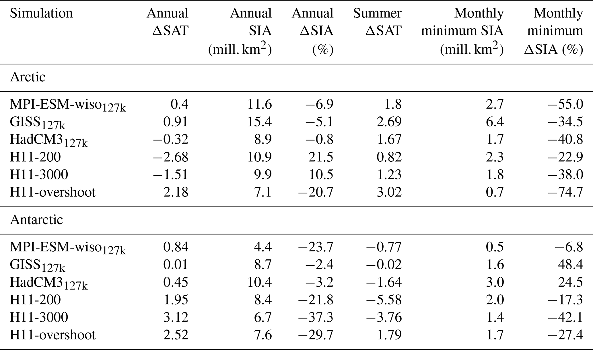 3.1 Model climatology: do our simulations capture the polar and global climate of 127 ka?