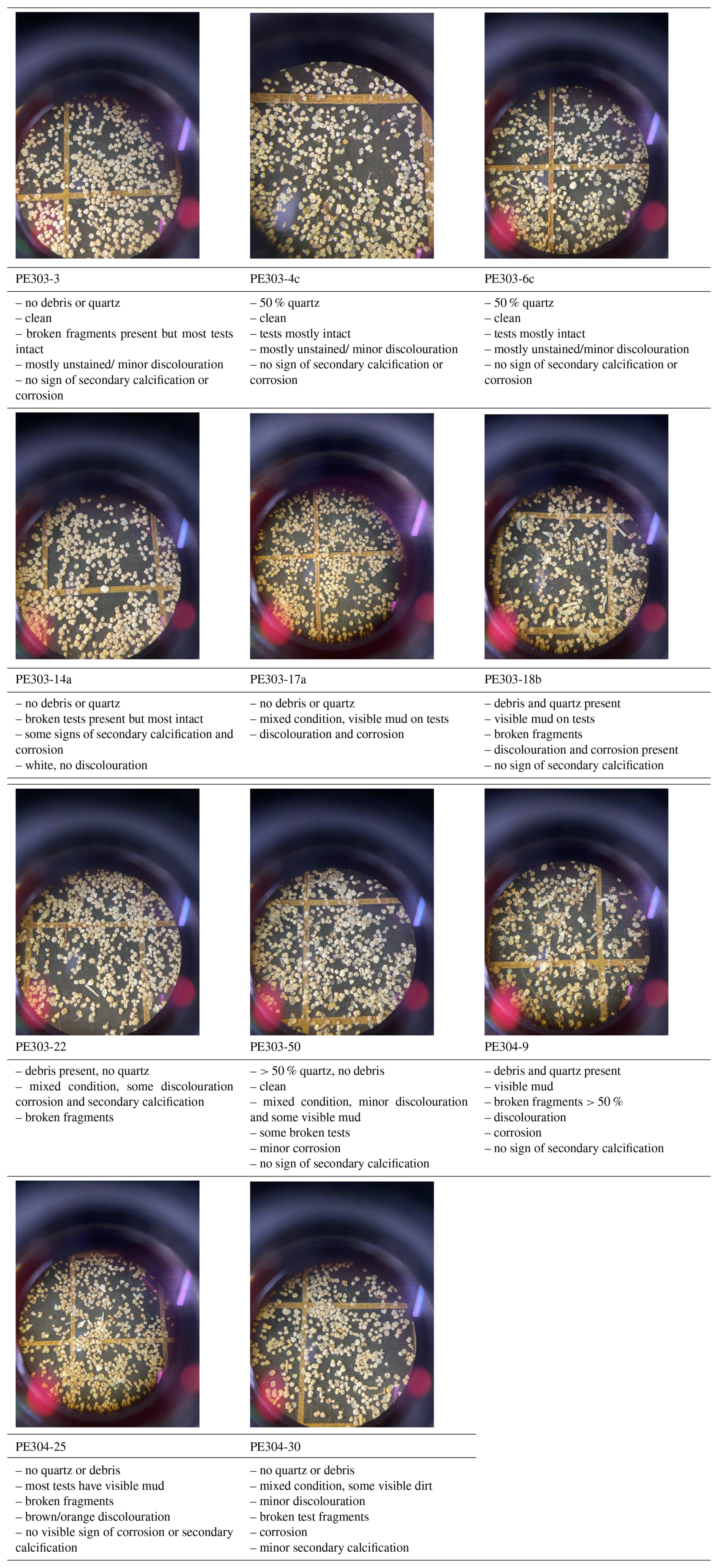 - Appendix C: Qualitative observations of benthic foraminifera samples analysed