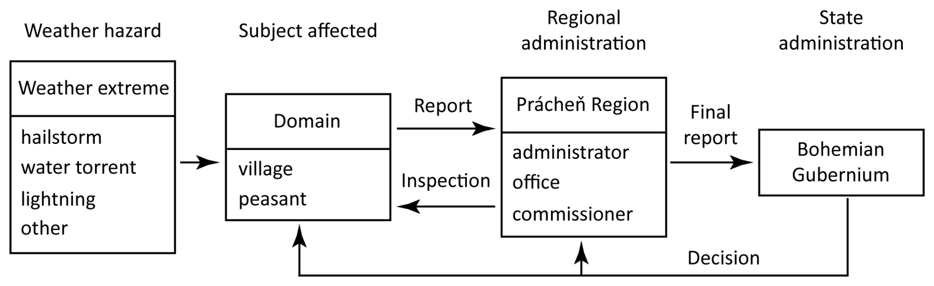 Figure 2A diagram of the administrative process connected with tax relief for peasants in the case of weather damage.
