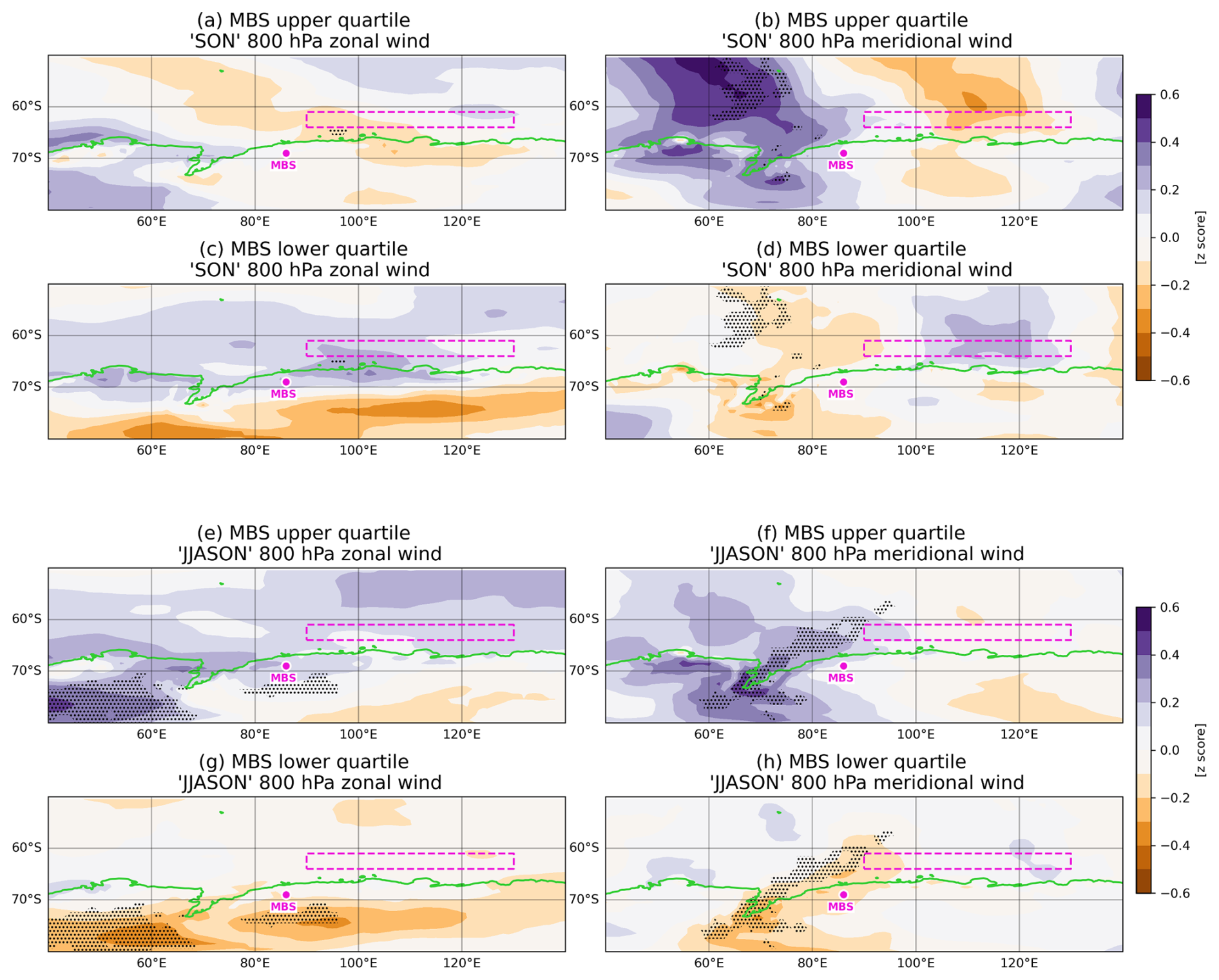 The dynamical mechanism of the influence of the tropical Pacific on local processes around MBS. Udy et al. (2021) noted that future work is needed to investigate how the surface conditions are preserved in ice core records and that may assist with mechanistic links between the climate and the preservation of the ice core signal.