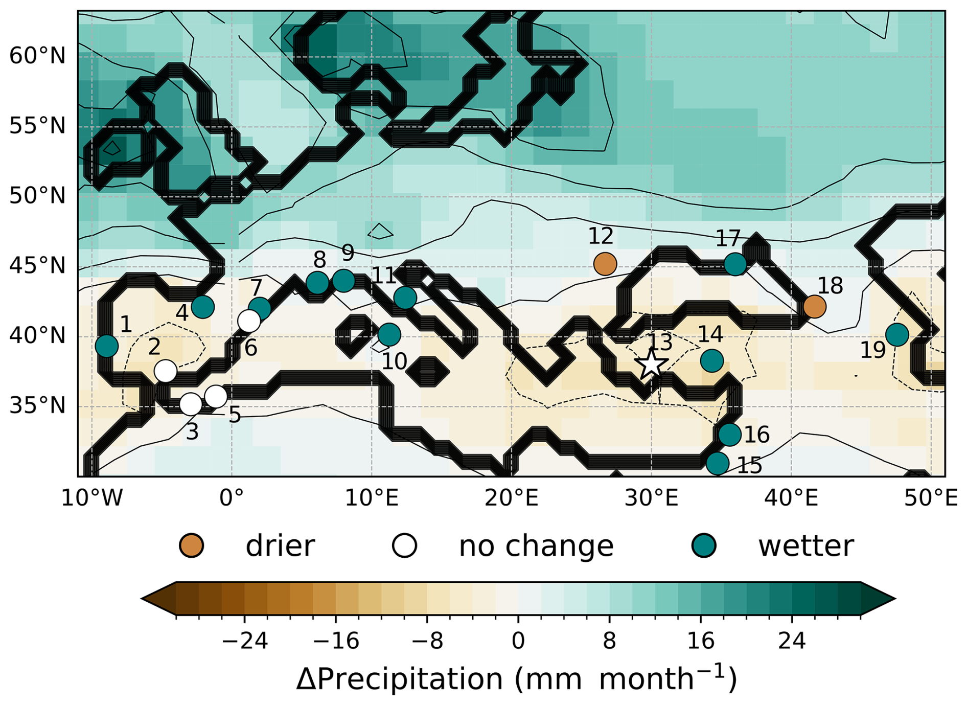 Peyron, O., Combourieu-Nebout, N., Brayshaw, D., Goring, S., Andrieu-Ponel, V., Desprat, S., Fletcher, W., Gambin, B., Ioakim, C., Joannin, S., Kotthoff, U., Kouli, K., Montade, V., Pross, J., Sadori, L., and Magny, M.: Precipitation changes in the Mediterranean basin during the Holocene from terrestrial and marine pollen records: a model–data comparison, Clim. Past, 13, 249–265, https://doi.org/10.5194/cp-13-249-2017, 2017.