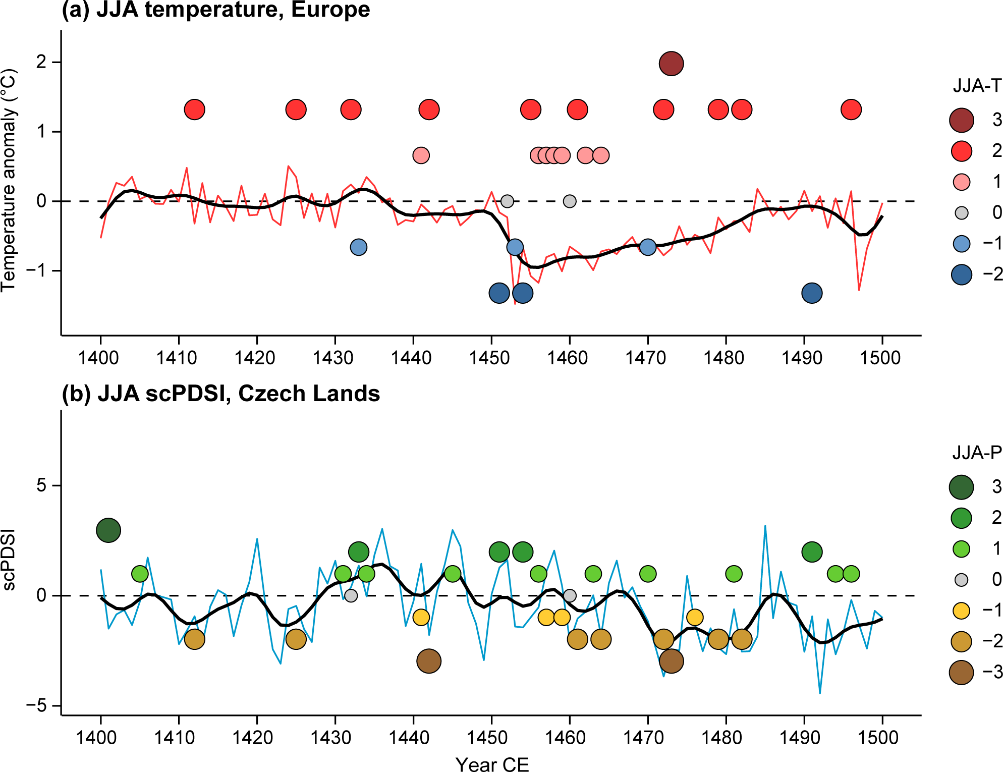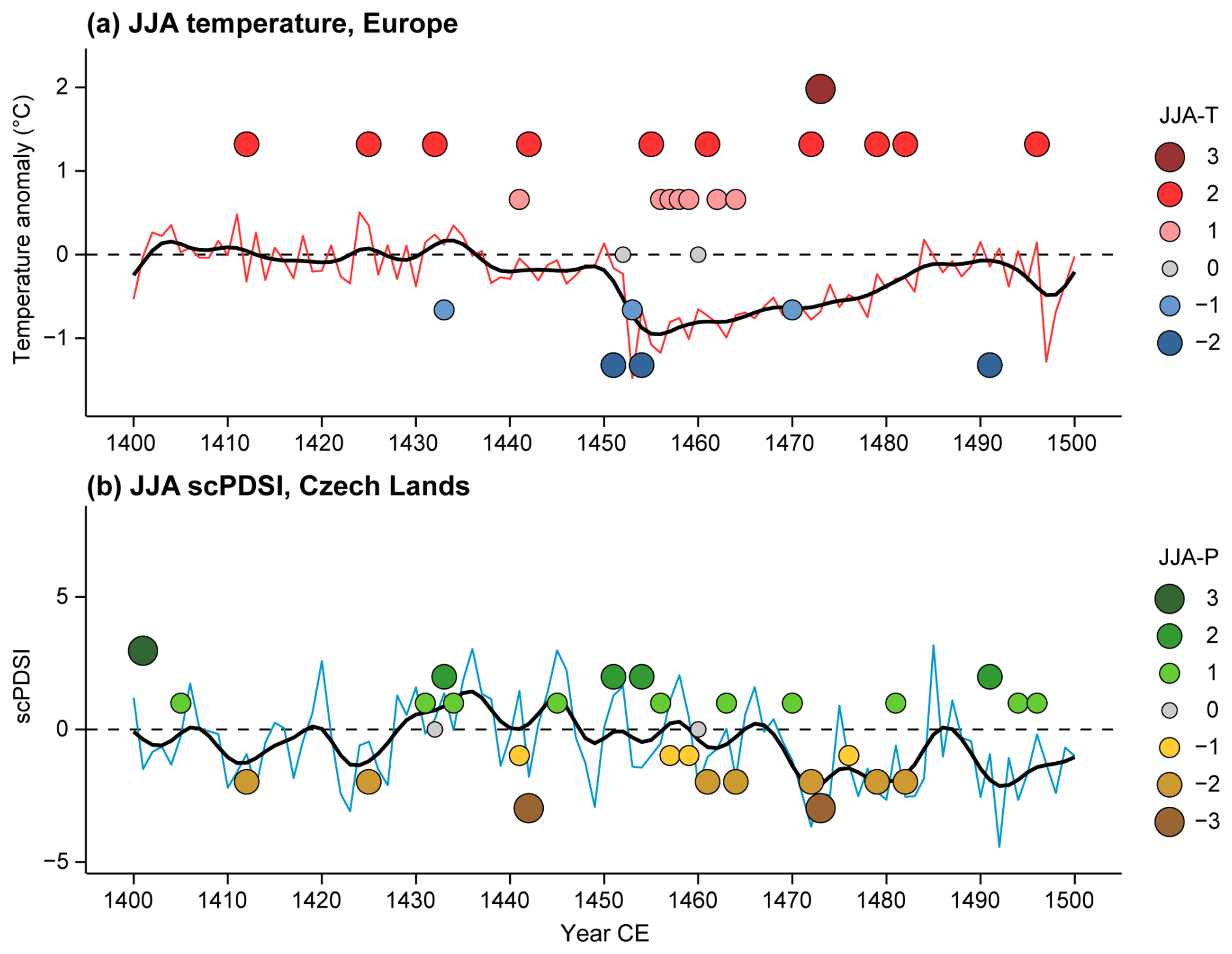 Brázdil, R., Dobrovolný, P., Torbenson, M. C. A, Dolák, L., and Chromá, K.: 15th century climate in the Czech Lands and its Central European context, Zenodo [data set], https://doi.org/10.5281/zenodo.16268128, 2025.