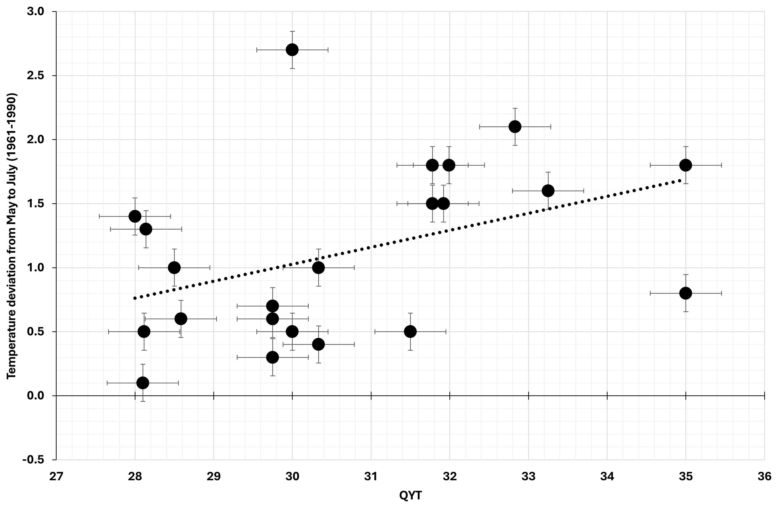 Pfister (1981) and Trachsel (2009) examined the long yield series from the Swiss Plateau covering the period between 1529 and 1966, according to the best practice of historical climatology, using multiple regression based on instrumental measurements. They found that almost two-thirds of the variation in wine must yields can be explained by temperature conditions in early and mid-summer (June to July), where the June and July temperatures of the previous year account for almost a quarter of the total.