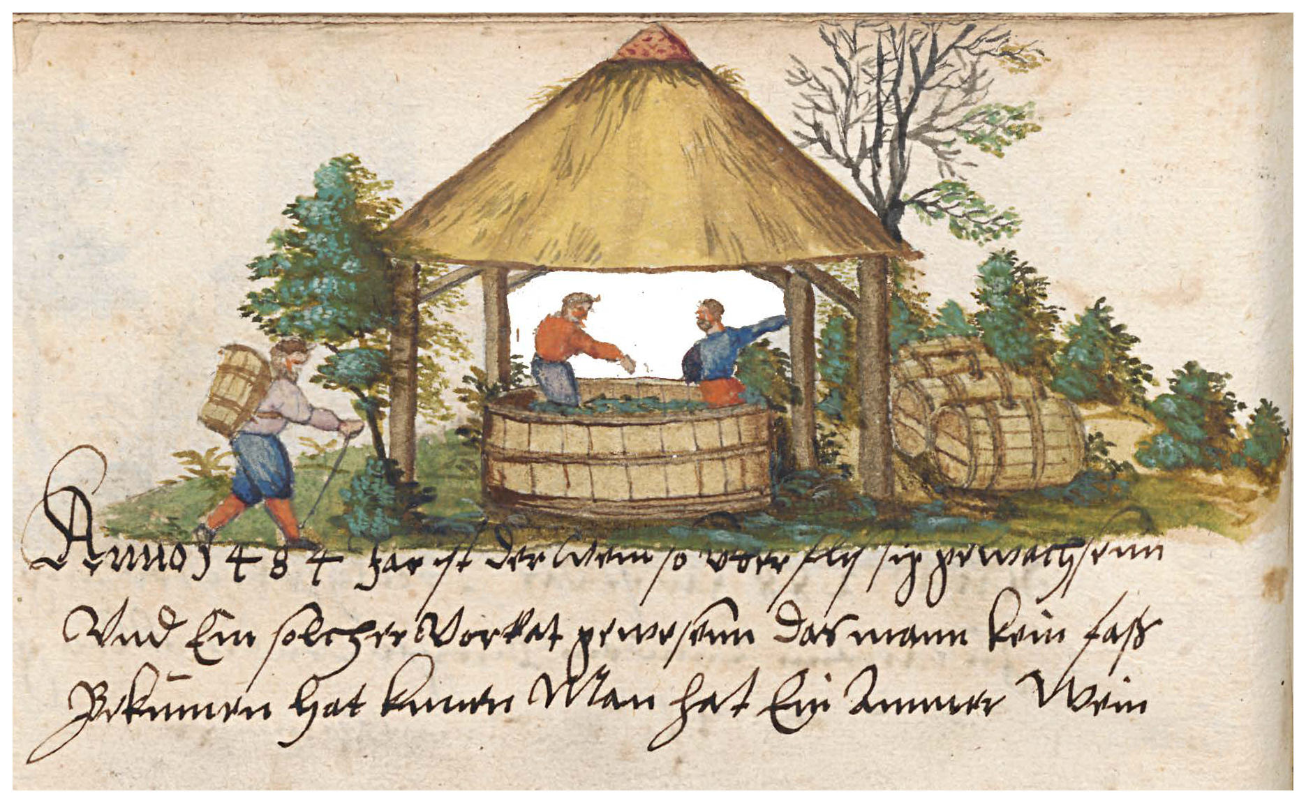 Historical climatology aims to combine the narrative approach of the historical sciences with the quantitative approach of the natural sciences (Pfister and Wanner, 2021). Wine must constitutes an unusually rich climatic source. Records relating to vine provide three climatic proxies, namely information on the start date of the grape harvest, the harvest quantity and the sweetness of the crushed grapes. Quality is least affected by human intervention before the harvest date, when the yield becomes most dependent on human activity. Gregory V. Jones and environmental scientist Robert E. Davis demonstrated that much of the annual variation in harvest date, yield and sugar content is controlled by a few large-scale weather conditions: cyclonic weather patterns with strong winds and cold fronts reduce the quantity and quality of the must and delay the ripening of the grapes, while warm, high-pressure conditions allow early, extensive, high-sugar crops to ripen (Jones and Davis, 2000). Brázdil et al. (2008) suggested that narrative vintage ratings on wine must quality and quantity can provide a high-resolution summer temperature proxy for the period preceding the availability of grape harvest dates (GHD). For example, when grapes did not ripen in 1258 (a cold “year without summer”) after the explosion of the Indonesian volcano Samalas (1257), grapes were collected in sacks and baskets (Hertzog, 1906). In the hot summer of 1293, in contrast, “excellent wine grew in abundance” (Bassermann-Jordan, 1907). So far, harvest date and vine must quality have been studied in the literature from a historical perspective (Labbé et al., 2019; Pfister et al., 2024).